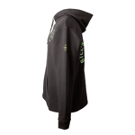 Black with green logo. Front logo is approximately 3.5 inches.